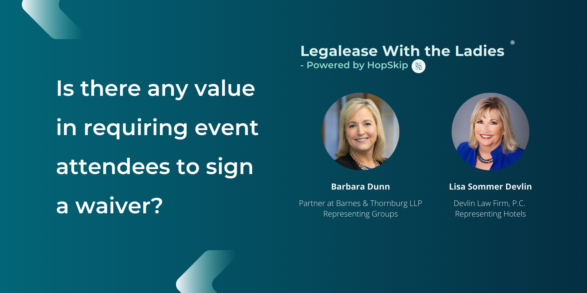 Barbara Dunn: I agree with you, Lisa. A release and waiver is certainly not a complete shield toward liability for the reasons Lisa mentioned. I also agree with regards to the optics. One thing I've seen a lot of planners do is put in their registration materials , release and waiver type language essentially using a “default agreement” or “default consent”, meaning by registering for the meeting you’ve agreed to waive all claims, etc.